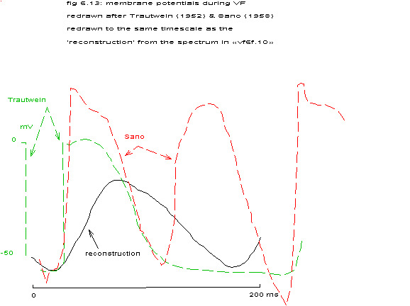 fig 6.13: membrane potentials during VF redrawn to the same timescale as the ‘reconstruction’ from the spectrum in fig. 6.10