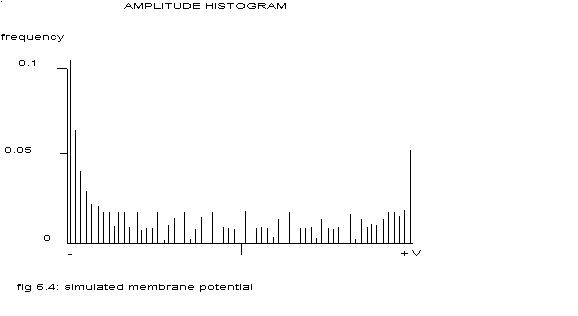 The amplitude histogram of the ‘membrane potential’ of the central model cell is depicted in the next figure.