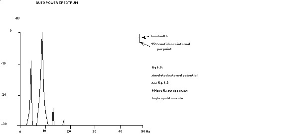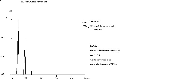 fig 6.8: power spectrum of simulated membrane potential 4.5 Hz corresponds to a repetition interval of 225 ms