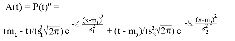 A(t) with m1=30, s1=10, m2=65 and s2=15.