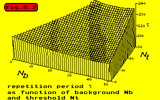 In the next figure the repetition period has been sketched as a function of the background activity and the threshold.